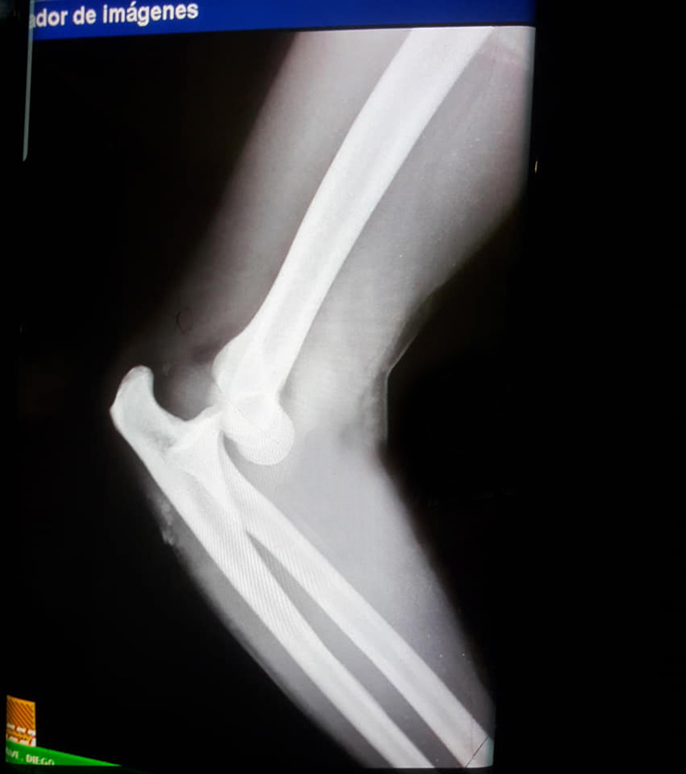 El “uno” franjeado fue trasladado al Hospital Zonal Dr. Camilo Muniagurria y allí se constató que sufrió una luxación posterior en el codo.