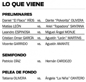 Como si lo anterior no fuera suficiente, la cartelera cuenta con otros cinco duelos. El primero será el de Daniel “El Flaco” Ríos (Eldorado) ante Dante “La Polvorita” Oberá, seguido por el choque entre Matías León, el crédito de Puerto Iguazú, ante Ariel “La Topadora” Santana, de Montecarlo.