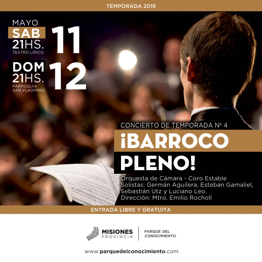 Este fin de semana a las 21, La Orquesta de Cámara y el Coro Estable se unen para transportarnos a la época del movimiento cultural y artístico Barroco. A través del arte, nos proponen transportarnos y difrutar de la música de los siglos XVII y XVIII. Las presentaciones serán los días sábado 11 a las 21 hs en el Teatro Lírico y el domingo 12 a las 21 hs en la Parroquia San Vladimiro.