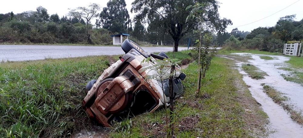 El vehículo circulaba por la mencionada arteria sentido San Javier-Leandro N Alem, cuando al pisar un espero de agua en la cinta asfáltica el conductor pierde el control del rodado, el que terminó de costado sobre la calzada.