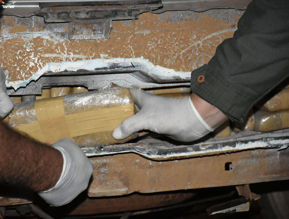 Durante la inspección, los funcionarios notaron que los ocupantes del vehículo estaban muy nerviosos y percibieron un fuerte olor, característico a “cannabis sativa”, por lo que, en presencia de testigos, observaron como el can detector de narcóticos “Laurita” reaccionó de manera exaltada al pasar por el sector del baúl del rodado, donde hallaron un doble fondo que ocultaba 75 paquetes rectangulares con una sustancia vegetal.