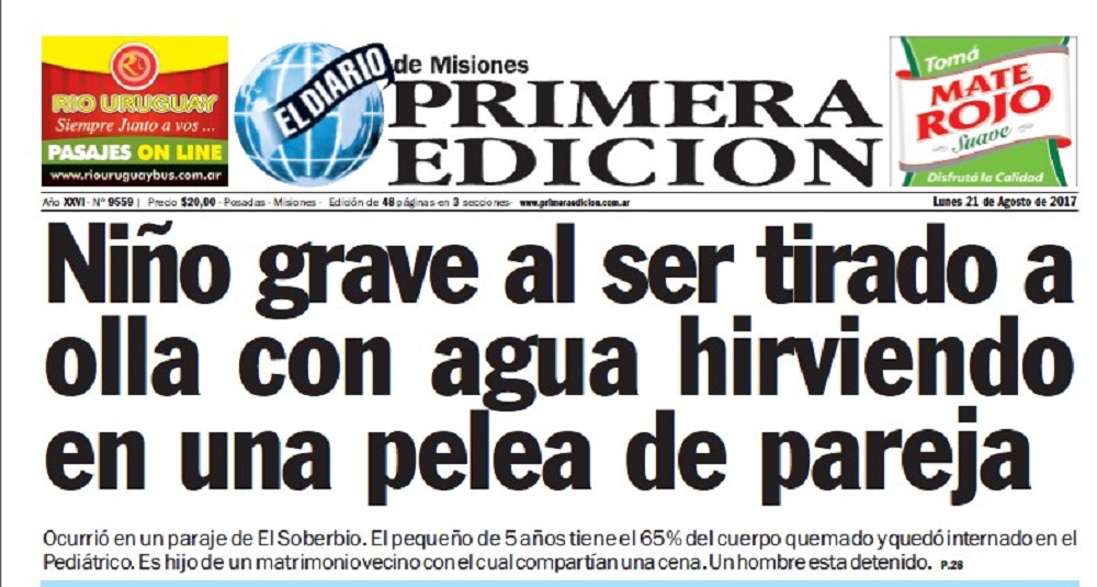 Desde el centro de salud, en virtud de la gravedad de las lesiones, fue trasladado de urgencia al Hospital de Pediatría de Posadas.