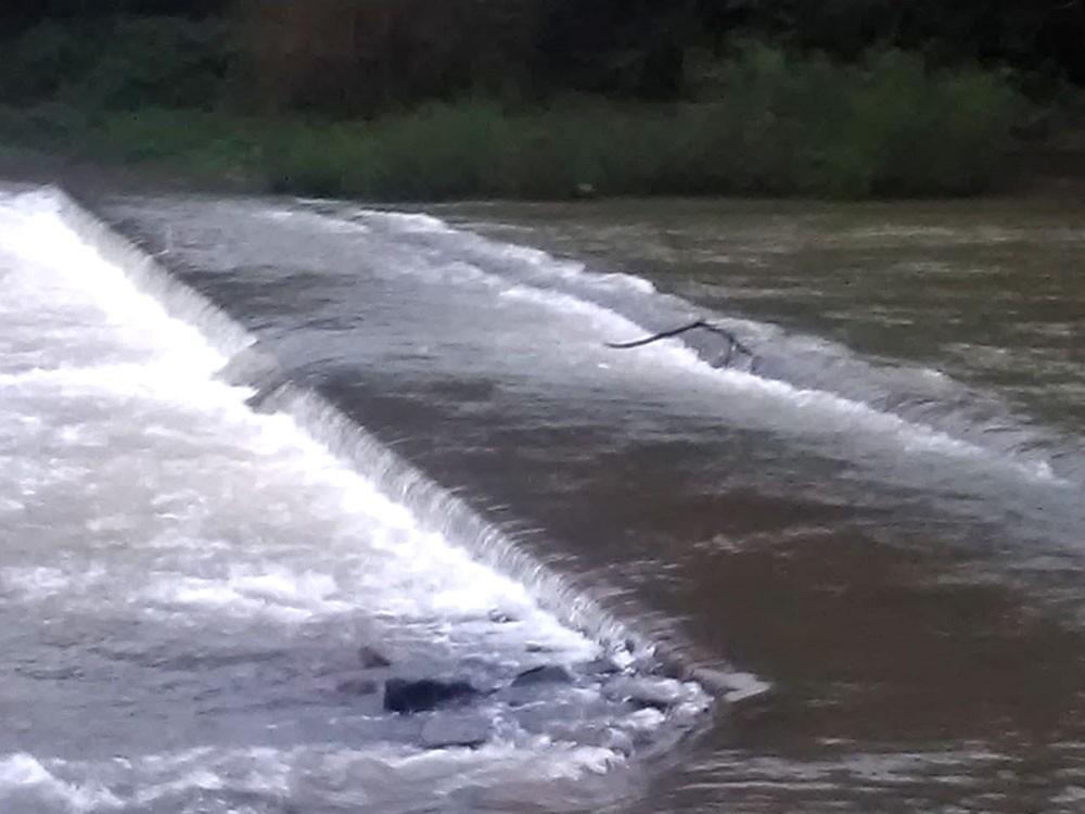 La altura del arroyo supera los 50 cm sobre el puente, lo que que impide la circulación vehicular y el acceso al parque provincial Moconá.