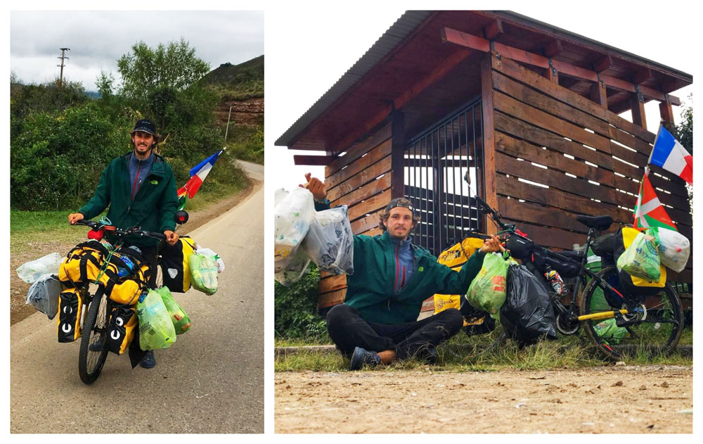 Lamentó que durante el pedaleo encuentra muchísima basura en los trayectos de las carreteras y por eso “decidí llenar poco a poco bolsas con basura porque para mí es muy importante luchar contra la polución, proteger a la pachamama y quitar la basura de las rutas. Si puedo generar un pequeño impacto en la naturaleza es positivo para mí. Así, cada cien kilómetros tengo que nominar a un amigo que me sigue en la página para que se acerque al medio ambiente y llene también él una bolsa de basura. Es para luchar contra la polución”.