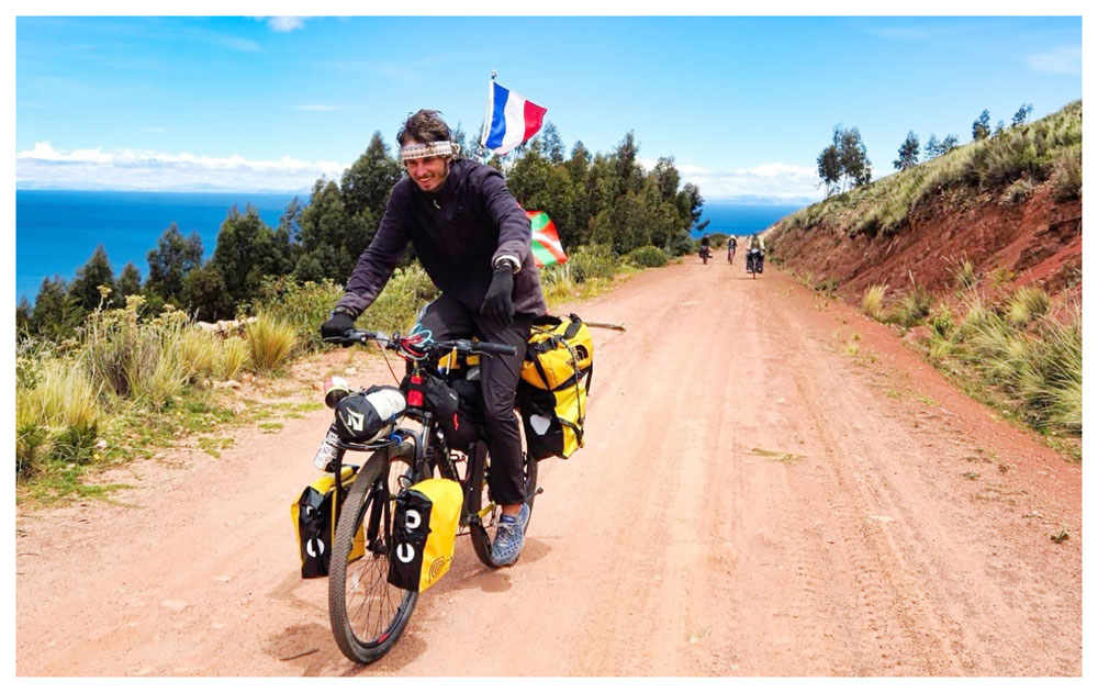 Llevando en alto la bandera de su país, admitió que viaja sin compañía porque “es una buena manera de encontrar gente. No es muy habitual ver a un extranjero con una bici y un montón de mochilas, entonces se acerca a hablar, te hace preguntas. Para mí está bueno en el sentido que podemos compartir historias”. A su entender, “tenemos una sola vida y es importante viajar y ser feliz”, agregó el viajero que sueña con pedalear en la Patagonia durante el invierno y regresar a Francia a mediados de diciembre. A su regreso concursará para ser guía de montaña y proyecta crear una finca ecológica. De esta manera, repartir el tiempo entre el trabajo y el trekking.