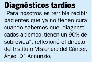 La incidencia del cáncer de cabeza y cuello en Misiones y el NEA es más alta que en el resto del país porque, según coincidieron la odontóloga Laura Fascetto del IMC, estomatóloga y especialista en cirugía bucomaxilofacial que atiende a los pacientes oncológicos en el Instituto Misionero del Cáncer (IMS) y el director de ese Instituto, el médico oncólogo Ángel D´Annunzio, la Provincia tiene un porcentaje importante de su población rural en situación vulnerable.