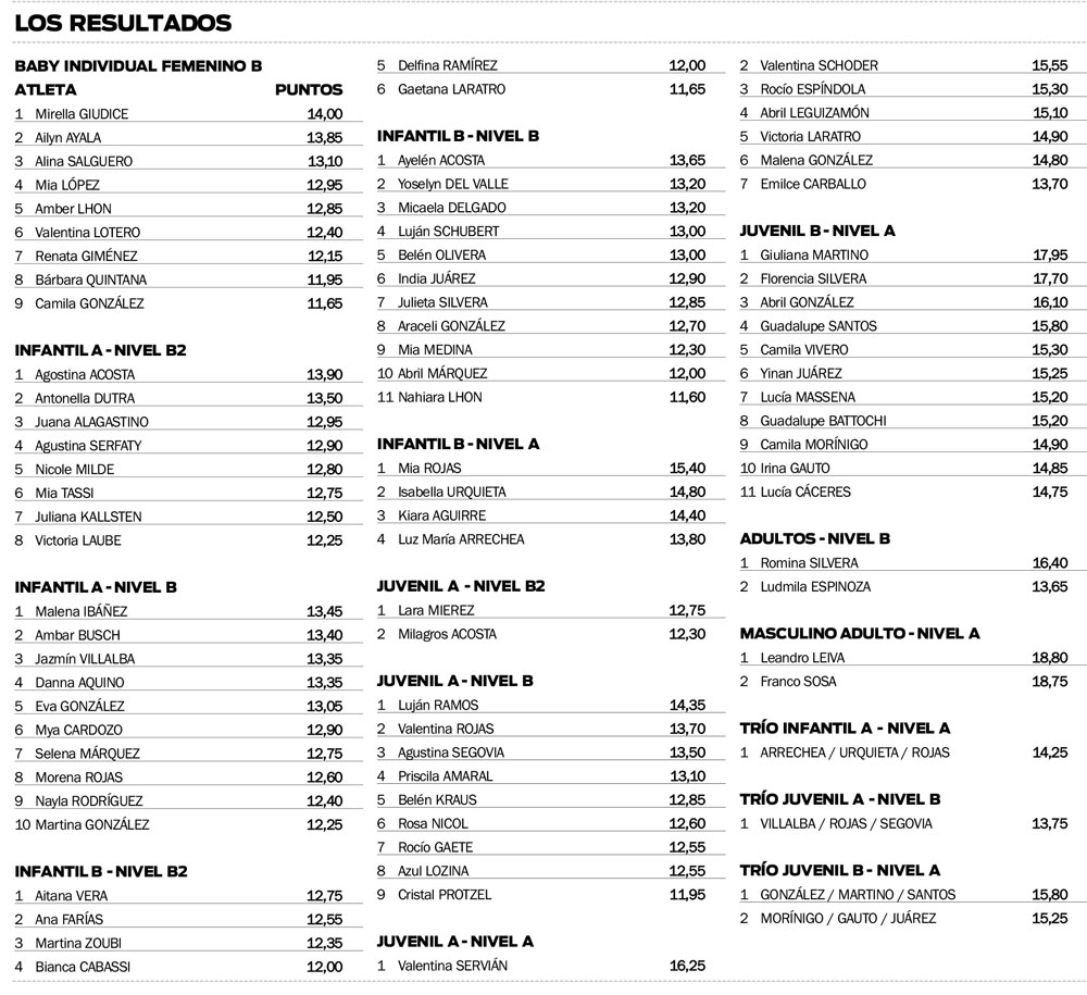 En ese sentido, en Trío Infantil A Nivel A las ganadoras fueron Arrechea, Urquieta y Rojas, mientras que en Juvenil B Nivel A la gloria quedó para González, Martino y Santos.