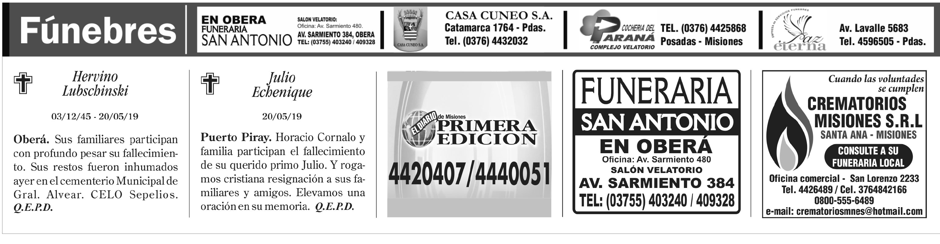 Tags: Fúnebres 21-05-2019