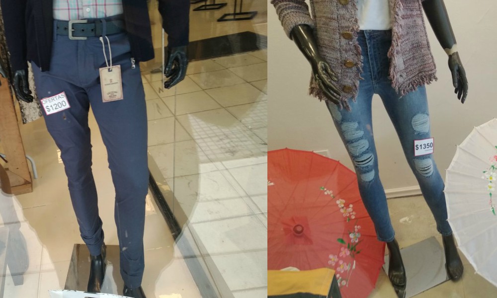 En materia de indumentaria, las mujeres llevan las de perder. En algunas cosas de ropa, los jeans o pantalones femeninos inician su costo en $1.300, en tanto que para los hombres cuestan $1.200. Aunque las ofertas por la temporada varían según las casas de venta, algunos vendedores optaron por elevar los costos en cerca de un 50 %. Los calzados por ejemplo, los borcegos para mujeres cuestan un promedio de $1.800, mientras que los de hombres tienen descuentos que van desde los $990.
