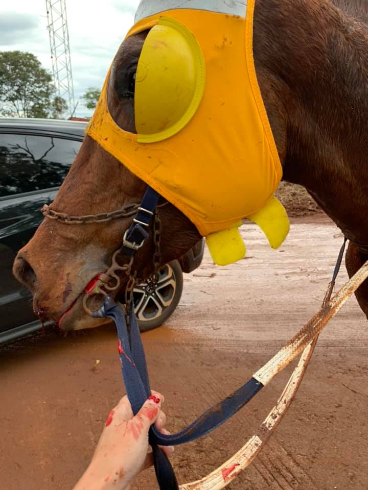 “Este caballo pasó desbocado, lo seguí con mi auto y a metros de la ruta lo pude agarrar. Lo encontré sangrando por la boca y la nariz, tremendamente agitado, excitado y agotado. El dolor de este animal es proporcional al dolor de mi alma”, escribió la denunciante.