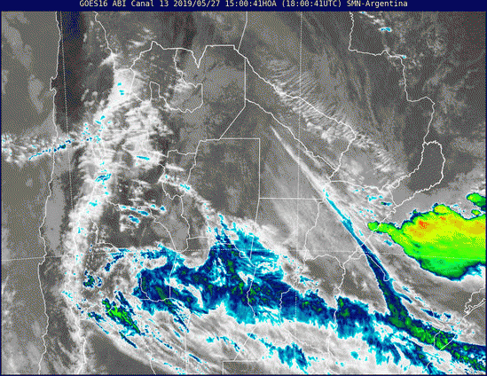 Sobre el área de cobertura continuarán desarrollándose áreas de lluvias y tormentas de variada intensidad, algunas de las cuáles pueden ser fuertes y estar acompañadas principalmente de abundante caída de agua en cortos períodos, ráfagas, ocasional caída de granizo e intensa actividad eléctrica. Las condiciones tenderán a mejorar entre la madrugada y la mañana del martes 28.