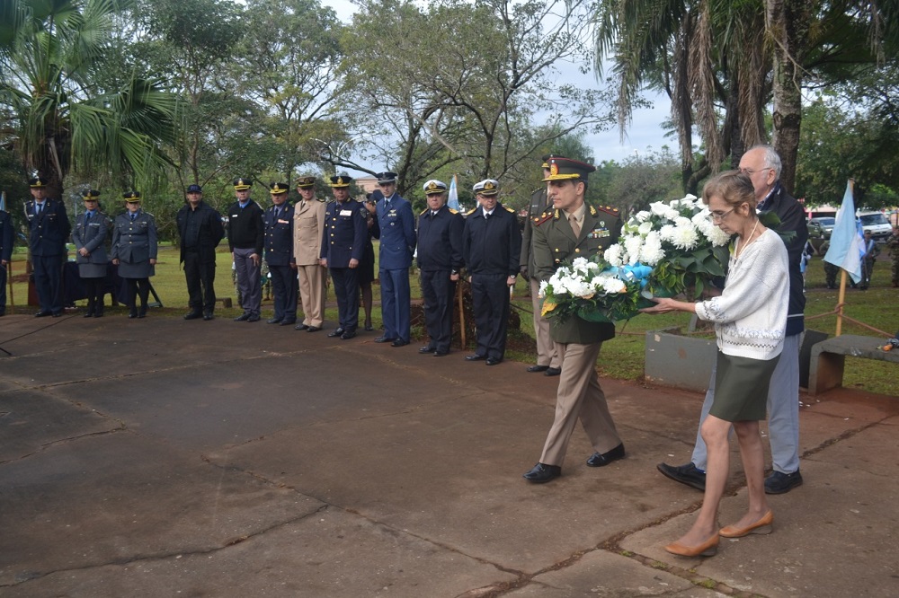 Luego de la presentación de los efectivos formados por el Jefe de Tropas se procedió a colocar una ofrenda floral al pie del monumento y se realizó un minuto de silencio.