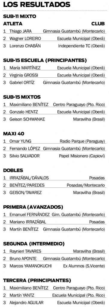“Fue una de las fechas de los últimos años donde tuvimos más participantes, lo que habla bien del nivel que tenemos, que es alto en comparación a las provincias cercanas de los países vecinos”, explicó a EL DEPORTIVO el presidente de la Federación Misionera de Tenis de Mesa, Matías Rea.