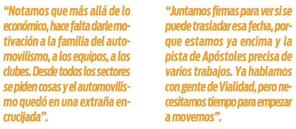 “La idea de los que estuvimos allí es la de colaborar. No tenemos la bandera de nadie ni le echamos la culpa a nadie. Sabemos que el problema no es sólo económico, hay responsabilidades compartidas. Conozco muchos pilotos que no dejaron de correr por falta de presupuesto, sino de motivación”, insistió Piatti, uno de los oradores, quien agregó que “vamos a tratar de limar asperezas, sentarnos todos en una misma mesa y trabajar en conjunto”.