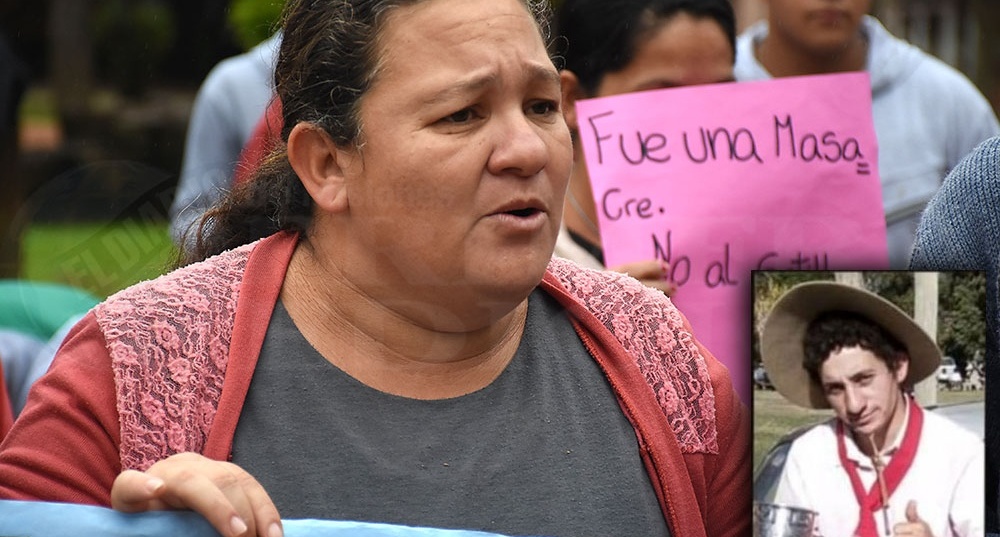 “No son delincuentes, son pibes”, “pedimos justicia por ‘Garrafita’, pedimos justicia por los chicos”, “no al gatillo fácil, no más muertos”. Las frases impresas en las cartulinas se replicaron en consignas cantadas, sin rimas, con fuerza, con dolor y con lágrimas que se mezclaron con la llovizna de la fría siesta de ayer en el pueblo de Aníbal Suárez, el joven misionero que murió en la denominada “masacre de San Miguel del Monte”.