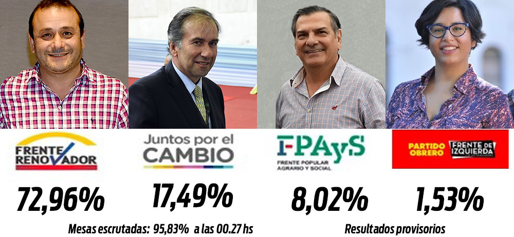 En tercera ubicación se ubica Isaac Lenguaza, del Frente Popular Agrario y Social, con 8% de los votos y con un punto, en cuarto lugar, la candidata del Partido Obrero, Olga Aguirre.