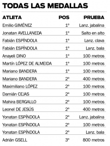 Yonatan Espíndola, oriundo de Jardín América y acompañado por el profe Nahuel Lamas, fue quien se quedó con más medallas, al alcanzar tres platas. Sin embargo, el posadeño Mariano Bandera -entrenado por Fede González- se alzó con el oro en los 100 metros llanos y la plata en los 400.