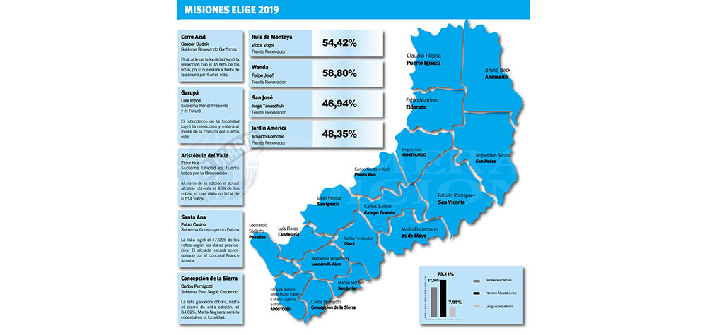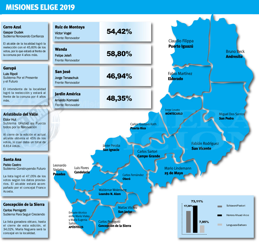Asimismo, los históricos alcaldes Norberto Aguirre, en Eldorado y Carlos Ríos, en Campo Viera perdieron la reelección y dejarán sus puestos en diciembre.