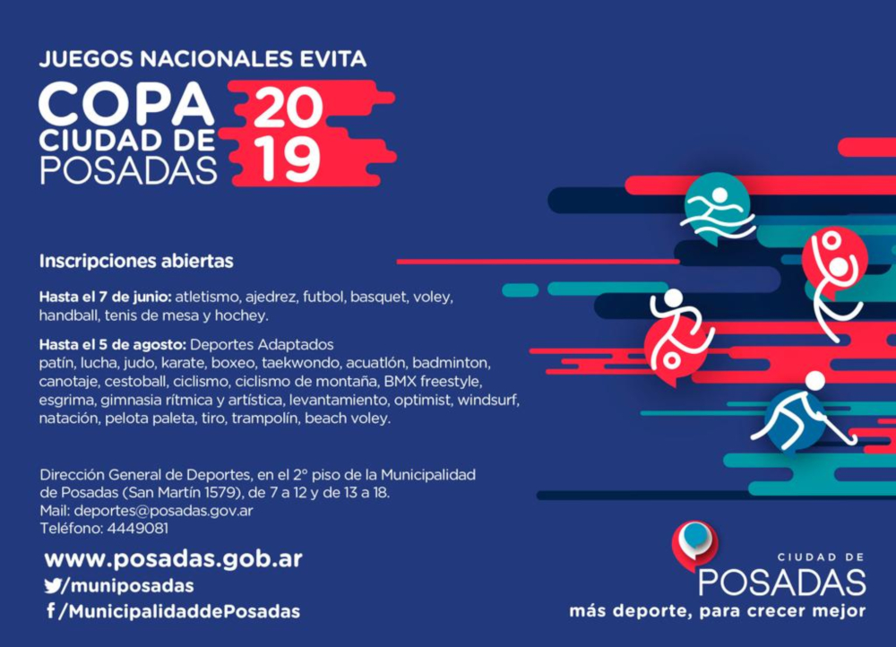 La “Copa Ciudad de Posadas” se llevará adelante del 10 de junio al 26 de julio en distintas sedes. Los ganadores clasificarán a la etapa zonal, que se disputará entre el 29 de julio y el 30 de agosto, y luego a la provincial que se desarrollará, desde el 26 de agosto hasta el 22 de septiembre. Quienes pasen esas instancias se clasificarán a la competencia nacional que se realizará en Mar del Plata, del 6 al 11 de octubre para las categorías juveniles y deportes adaptados. En el caso de los adultos mayores será en Miramar, del 10 al 14 de septiembre.