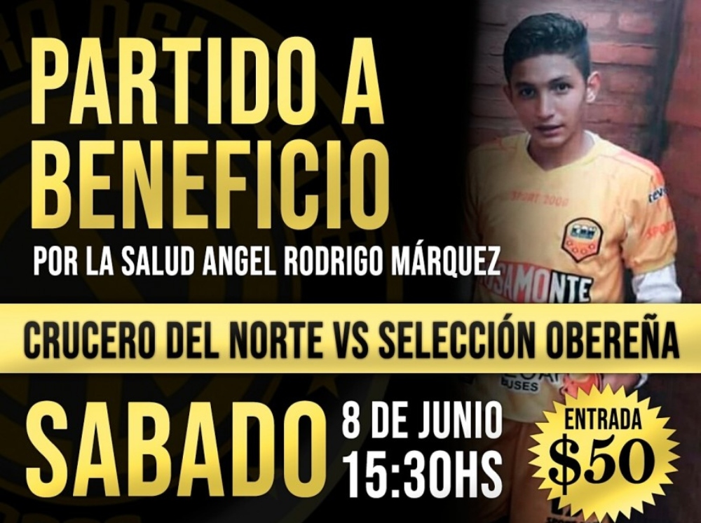 El próximo sábado 8 del corriente, desde las 15.30, se llevará a cabo un encuentro amistoso solidario entre el plantel principal de Crucero del Norte y la Selección Obereña con el objetivo de recaudar fondos para ayudar al joven Ángel Rodrigo Márquez.