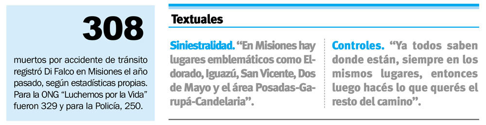 Di Falco reveló que “más de un 50% de los accidentados que ingresan los fines de semana en el hospital están alcoholizados”. Lamentó que “de los 76 municipios de Misiones, sólo dos están adheridos a (la ley de) ‘alcohol cero’: Posadas y Puerto Rico. Pero igual está la norma y se sigue incumpliendo por falta de alcoholímetros”.