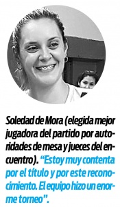El arranque del tercer set fue parejo, pero el “automotor” fue poco a poco marcando la diferencia merced a la jerarquía de sus jugadoras y no tuvo complicaciones para cerrar el encuentro. Finalmente fue 15-7 y festejo para las “auriverdes”, que tuvieron a Soledad de Mora como la mejor jugadora de la final, elegida por jueces y autoridades de mesa.