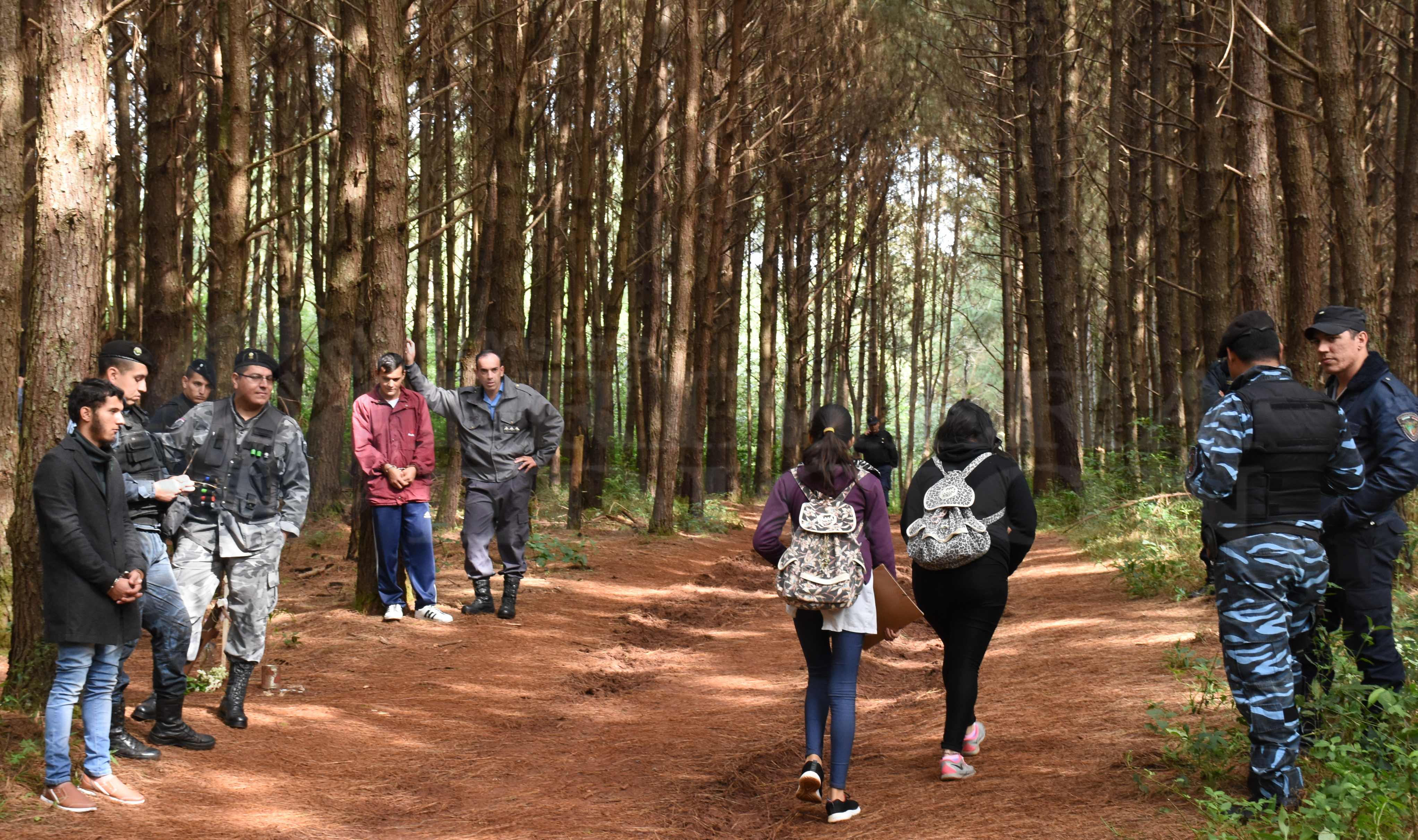 Dos de los imputados se detuvieron frente a la cruz que recuerda el lugar exacto donde fue asesinada Miriam Estela Cubas (16) y bajaron la cabeza. Es que justo en ese momento, y como una mueca macabra del destino, dos menores que regresaban de la escuela pasaron por el lugar frente a los acusados.