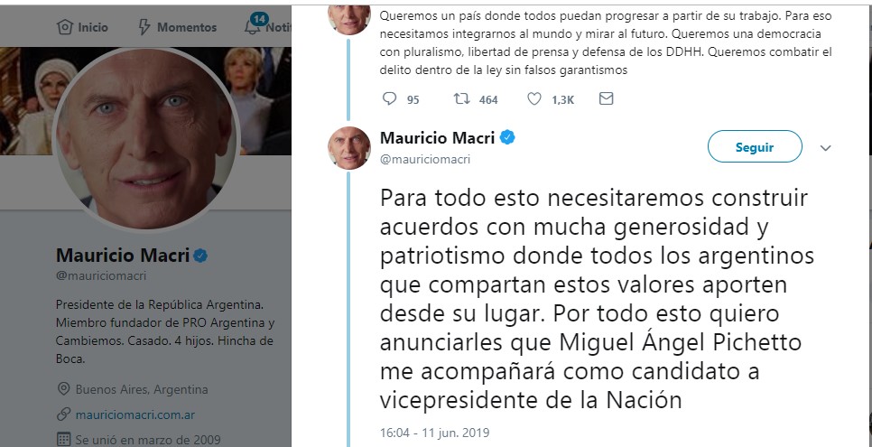 — Mauricio Macri (@mauriciomacri) 11 de junio de 2019