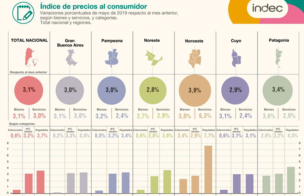 Las zonas del país con menor alza de precios minoristas fueron la región de Cuyo, con 2,9%, y la del Noreste, con 2,8%.