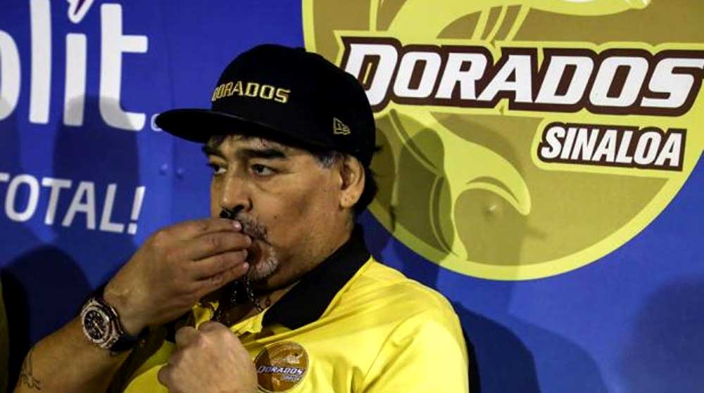 Diego Armando Maradona renunció este jueves a la dirección técnica de Dorados de Sinaloa, que milita en la segunda división del fútbol mexicano y que perdió dos finales de ascenso consecutivas con el “Diez” en el banco. La decisión la tomó para priorizar su salud y quedarse en Buenos Aires donde se realizará dos intervenciones quirúrgicas.