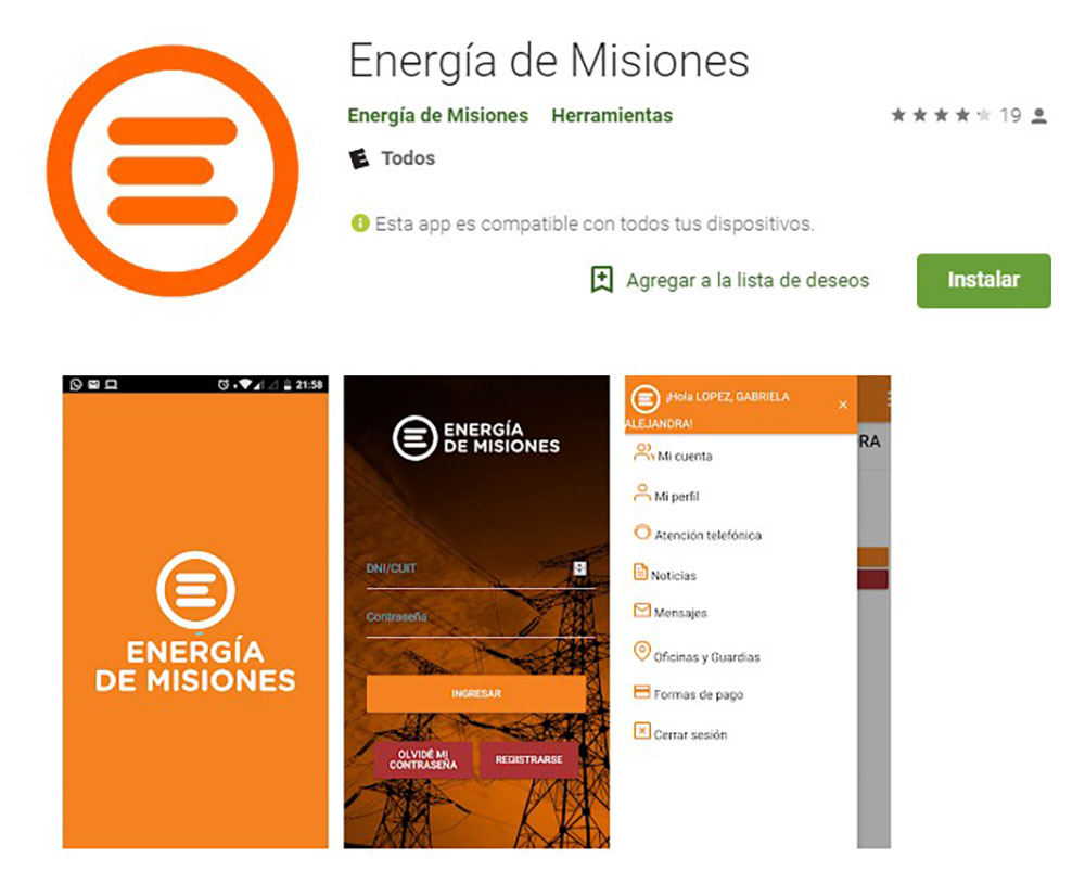 En Play Store con el nombre de Energía de Misiones, el sistema solicita el DNI y otorga una contraseña para cada usuario. Y a partir de ahí ya puede empezar a operar.