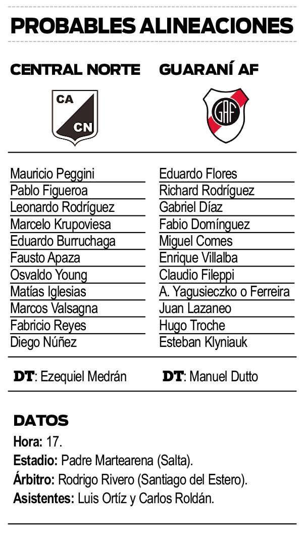 Será un partido a todo o nada entre misioneros y salteños, que estarán frente a frente a partir de las 17, en el estadio Padre Martearena. El árbitro será el santiagueño Rodrigo Rivero.
