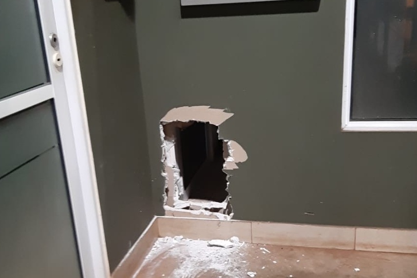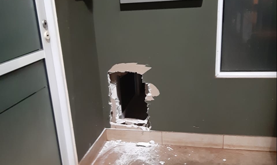 Para poder ingresar al predio el o los ladrones treparon y rompieron parte del techo, luego dañaron varios accesos y finalmente también hicieron un boquete en una de las paredes internas, justamente la que da al lugar donde se hallaba la caja de seguridad.