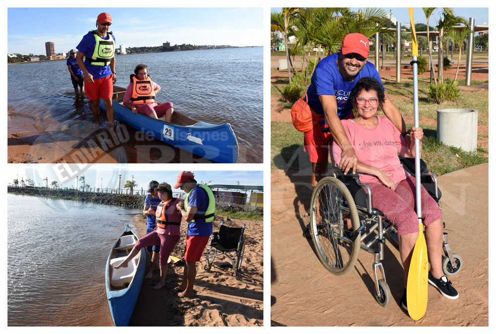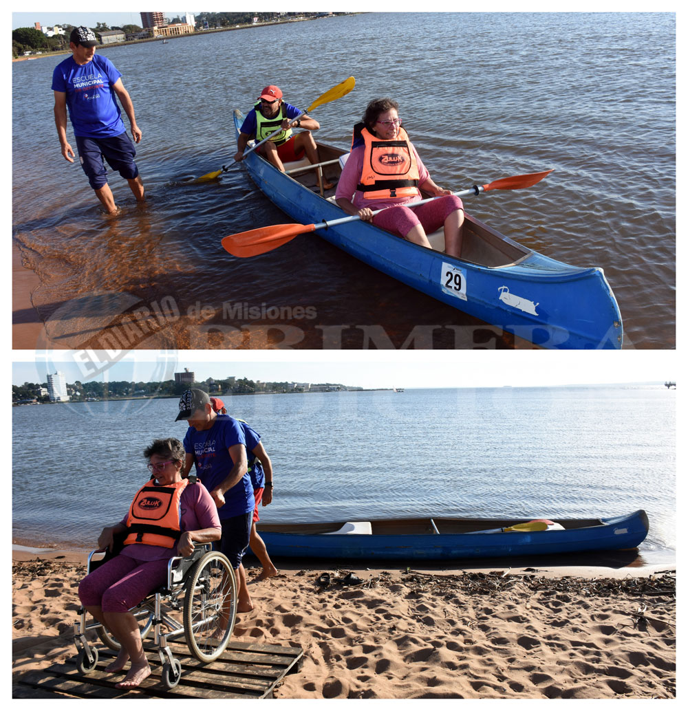 Arrancan a las 16 y se quedan hasta las 18. El móvil de la Municipalidad de Posadas la pasa a buscar -también a otros participantes en su condición-, los trae y los lleva. Una vez en la zona del exbalneario El Brete, la ayudan a colocarse el chaleco salvavidas, a acomodarse en la piragua, y a salir a remar, custodiada por Balatorre. “Pasamos una tarde muy linda. Compartimos unas charlas instructivas, nos retroalimentamos, porque en esos momentos nos vamos al fondo de las cuestiones y pasamos muy lindo. Físicamente me hace muy bien. Es tremendo, no siento dolores salvo uno pequeño en la espalda que, durante los días de canotaje, lo mejoro enormemente”, expresó, al tiempo que puso de manifiesto el acompañamiento diario de “Nati”, que es quien “me cuida hace quince años”.