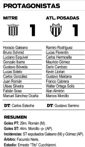 En el juego que completó las series de ida de cuartos de final del Torneo Anual Clasificatorio de la Liga Posadeña de Fútbol, Bartolomé Mitre dejó escapar la posibilidad de sacar una buena ventaja en casa.