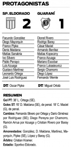 El máximo atractivo de la quinta y última fecha de la fase de grupos del Torneo Oficial 2019 “Centenario de la Ciudad de Eldorado” de Primera División de la Liga de Fútbol de Eldorado fue para Sportivo Eldorado, que ayer logró vencer ajustadamente en el clásico a su par de Atlético Guaraní por 2 a 1 y así sigue firme en lo más alto de la Zona A.