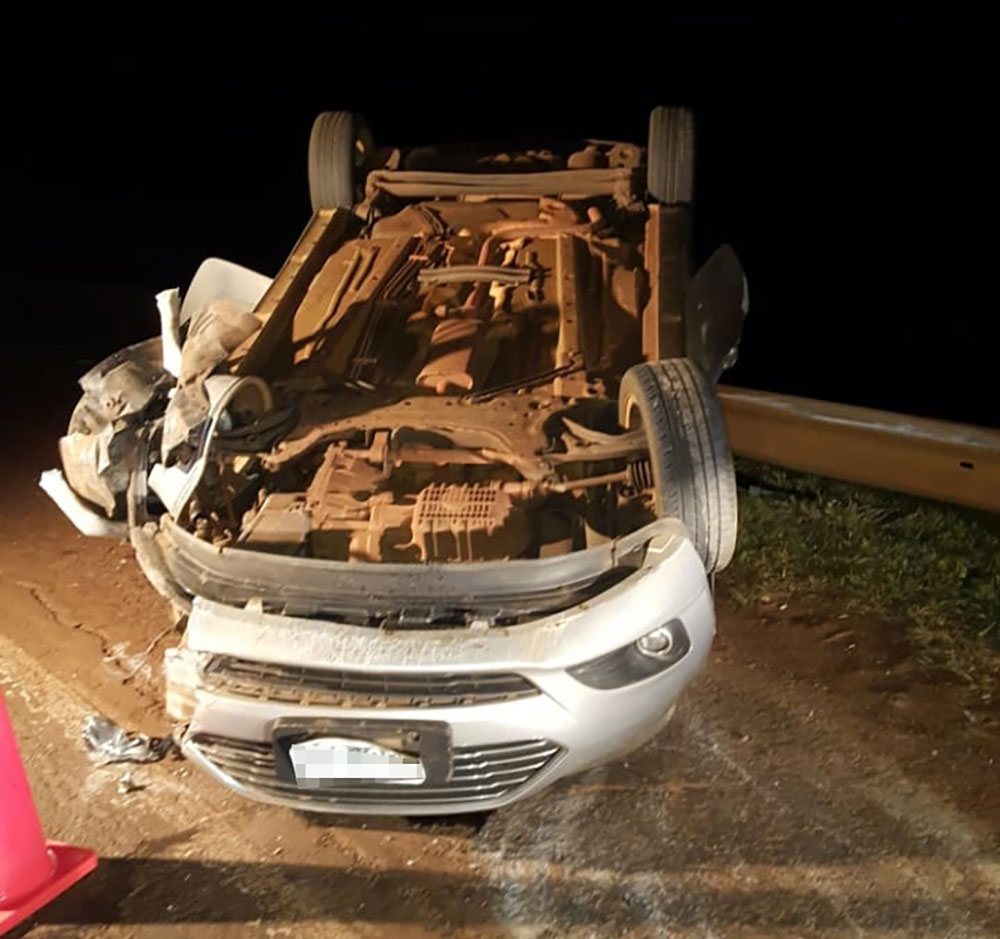 A raíz de esto, el vehículo golpeó contra las barandas del puente y tras derrapar volcó sobre la banquina del mismo carril de circulación.
