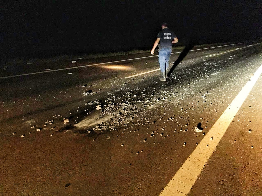 A las 3.20, un llamado al 911 alertó de la situación que ocurría en ese tramo de la ruta 12, el cual no posee iluminación. Al llegar a la zona una patrulla de la Comisaría Décimo Quinta UR-X, notó que en ambas manos se encontraban piedras de gran tamaño, algunas de las cuales ya mostraban signos de haber sido golpeadas por vehículos.