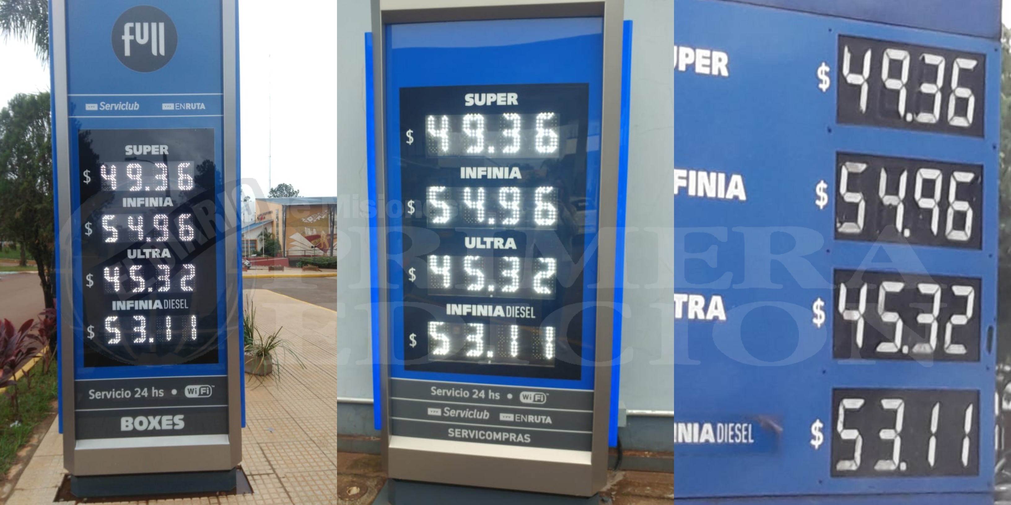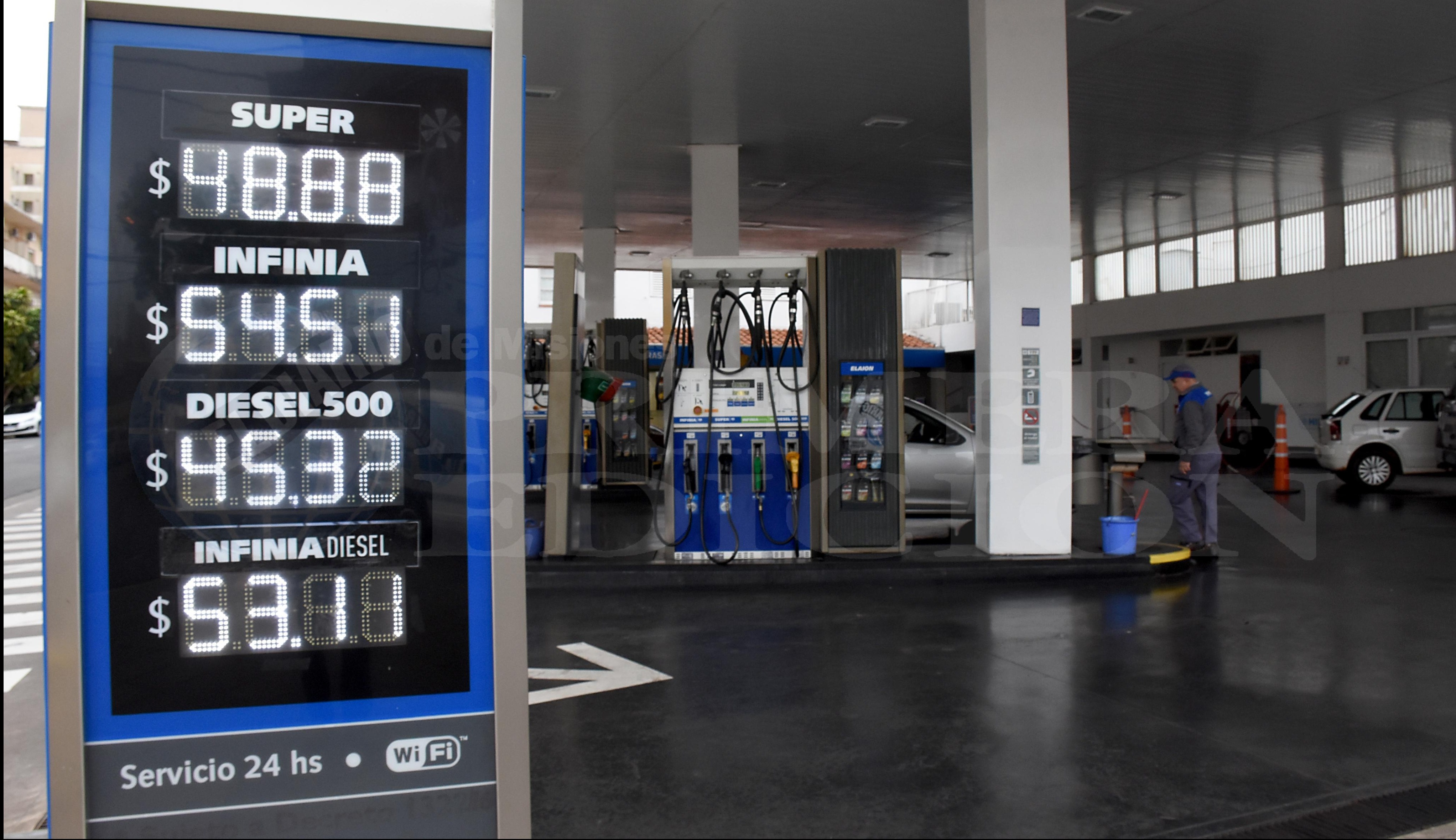 En Posadas, por ejemplo, en la estación de bandera la nafta súper que a fines de junio costaba $47,69, con este nuevo aumento pasó a $48,88; la Infinia de $53,18 a $54,51; el diésel de $44,54 a $45,32; y el Infinia diésel de $52,20 a $53,11.