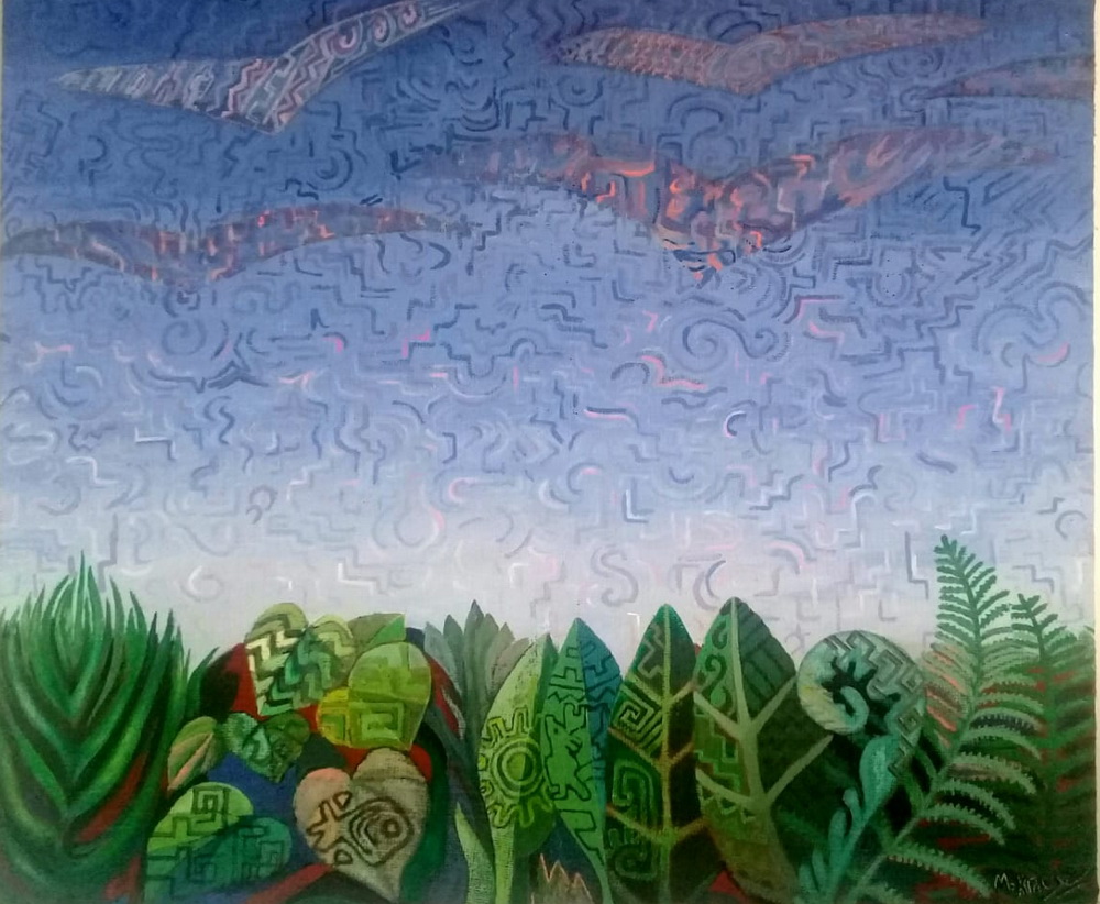 La exposición comprende diferentes trabajos confeccionados en diferentes estampados de telas con resoluciones y volúmenes, que van desde figuras planas y abstractas que tienen como esencia vestigios de las culturas andinas y guaraníticas en un contexto latinoamericano.