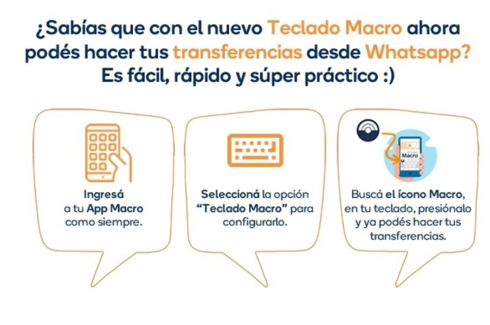 “Utilizamos el teclado de los teléfonos inteligentes como un nuevo canal de servicio, información y comunicación para nuestros clientes. Esta es una solución segura y fácil pensada específicamente desde la demanda, en lo que el consumidor necesita hoy en día. Sin la necesidad de dejar la red social de mensajería instantánea, el usuario puede realizar una transferencia inmediata y operar con el banco de manera cómoda y sencilla”, aseguró Milagro Medrano, Gerente de Relaciones Institucionales y Atención al Cliente de Banco Macro.