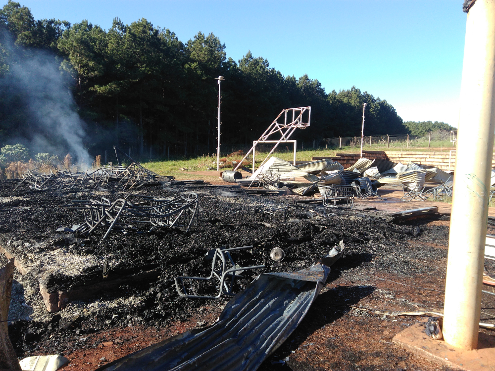 Al llegar a la institución, encontraron pintura salpicada, las aulas estaban todas abiertas y la basura de los cestos desparramada por la galería. Todo indicaría que una o más personas estuvieron en la escena y serían los mismos que incendiaron el edificio de madera.