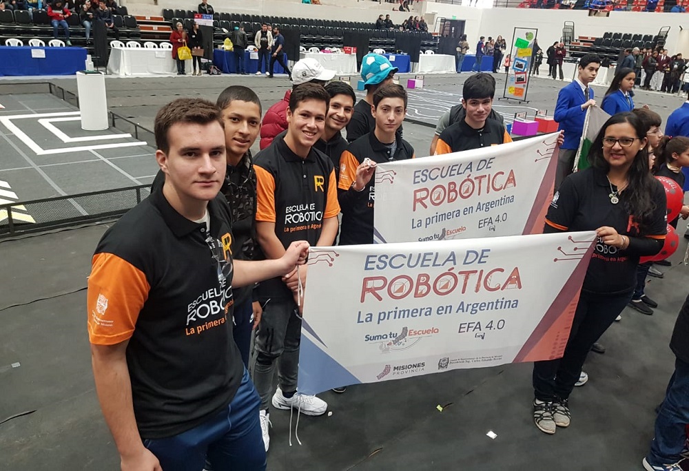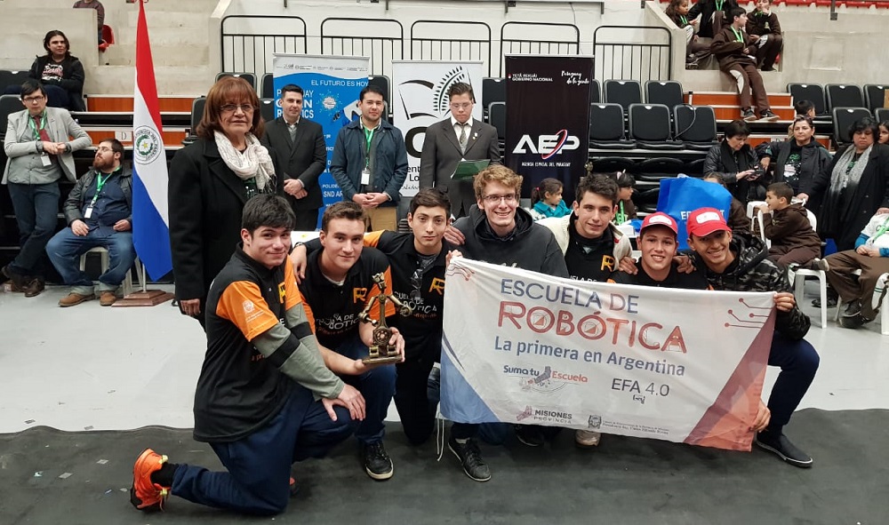 La Escuela de Robótica de Misiones participó en el Paraguay Open Robotics 2019 celebrada desde ayer en Asunción. En esta competencia los estudiantes misioneros Juan Carlos Beltrán y Adrián Gómes (de la EPET 25 de Campo Grande), y Matías Agustín Chiusa y Gustavo B. Giménez Bosch (del Instituto Politécnico San Arnoldo Janssen), participaron de la Línea Suma tu Escuela fueron merecedores del reconocimiento como Alianza en el modo Desafío- Estaciones del Ferrocarril, con un premio especial al reconocimiento por trabajo en equipo.