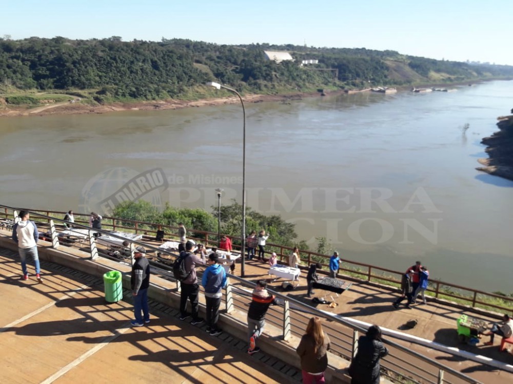 Turistas del todo el mundo recorren en este momento las calles y los atractivos de Puerto Iguazú, como el Hito Tres Fronteras que después de las Cataratas del Iguazú, es uno de los espacios más visitados.