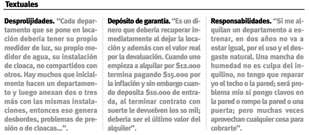 Según él, las preocupaciones más frecuentes pasan “principalmente por poder sostener los aumentos del alquiler, que son bastante caros sobre todo a la hora de renovar el contrato; y la habitabilidad de las viviendas, porque muchas veces los propietarios son un poco reacios a hacerse cargo de las reparaciones para el correcto funcionamiento de instalaciones como luz, agua, cloacas, obligando así al inquilino a irse a otro lugar o a arreglar el problema por su propio bolsillo”.