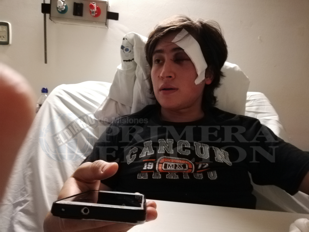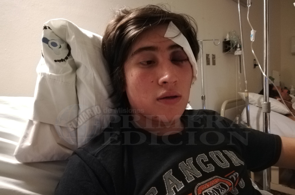 José Viana se recupera en el hospital Ramón Madariaga de Posadas de las lesiones de arma blanca que sufrió durante la madrugada del viernes en una fiesta de estudiantes universitarios, la mayoría de la Facultad de Ingeniería de la UNaM en Oberá. El joven de 23 años continúa con riesgo de perder la vista del ojo derecho, que estuvo a milímetros de ser atravesado por una estocada de puñal. “Me di cuenta de que era grave lo que me pasó cuando me toqué la cara y tenía un agujero a la altura del ojo. Me estaba desangrando”, contó ayer en exclusiva a PRIMERA EDICIÓN.