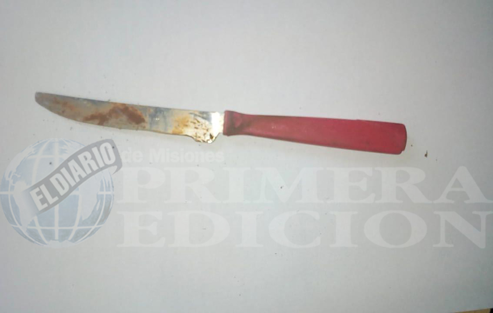 Luego de un rastrillaje, pudieron hallar un cuchillo con mango de plástico, con el cual el detenido habría provocado la agresión. El caso fue informado a la Justicia.