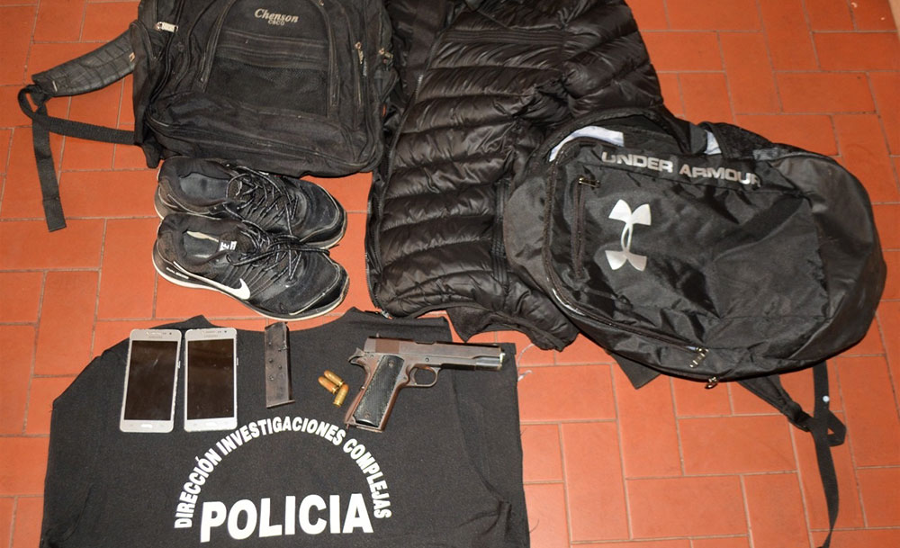 En el interior de la Kangoo se hallaron dos celulares, un arma de fuego calibre 11, 25 mm, tres proyectiles, una mochila y un par de zapatillas.
