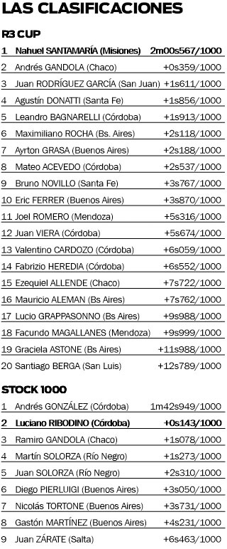 En cuanto a las demás divisionales, el cordobés Luciano Ribodino -también integrante de la escuadra misionera- terminó segundo en Superbike, detrás de Andrés González. Ribodino viene de ganar en la última fecha, que se corrió en Buenos Aires. También fue importante lo hecho por “Lalo” Zini en Stock Bike, donde clasificó segundo.
