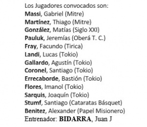 La Preselección Misionera U-17 Masculina concentrará y entrenará este miércoles a las 17.30 en el Club Itapúa de la ciudad de Posadas bajo las órdenes de Juan José Bidarra. Serán 13 los jugadores que dirán presentes.